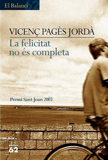 Des de fa anys Àngel Mauri ha estat donant voltes a una frase inacabada que va veure en una paret de Cerdanyola: "La felicitat no és completa. Fal...". Ell no se sent feliç, però seria incorrecte considerar-lo un desgraciat integral. En qualsevol cas, no està segur de què li falta. La felicitat no és completa narra set episodis en la formació del protagonista, Àngel Mauri, entre 1971 i 2003. L'amistat, la família, l'educació, l'amor, la feina o la política són etapes de la seva socialització, en general defectuosa. A més d'un dubtós aprenentatge vital, la novel·la retrata les continuïtats i les metamorfosis, les contradiccions i les reminiscències d'un personatge, però també els escenaris, les paraules, els jocs i les músiques d'una època. Sense crítica ni nostàlgia, al contrari: amb humor, tendresa i, sobretot, amb la força de l'hiperrealisme, La felicitat no és completa recorre el foc i la cendra, els costums i les singularitats d'una generació que va veure la llum quan va morir John F. Kennedy i ofereix una visió inèdita dels anys setanta i vuitanta.