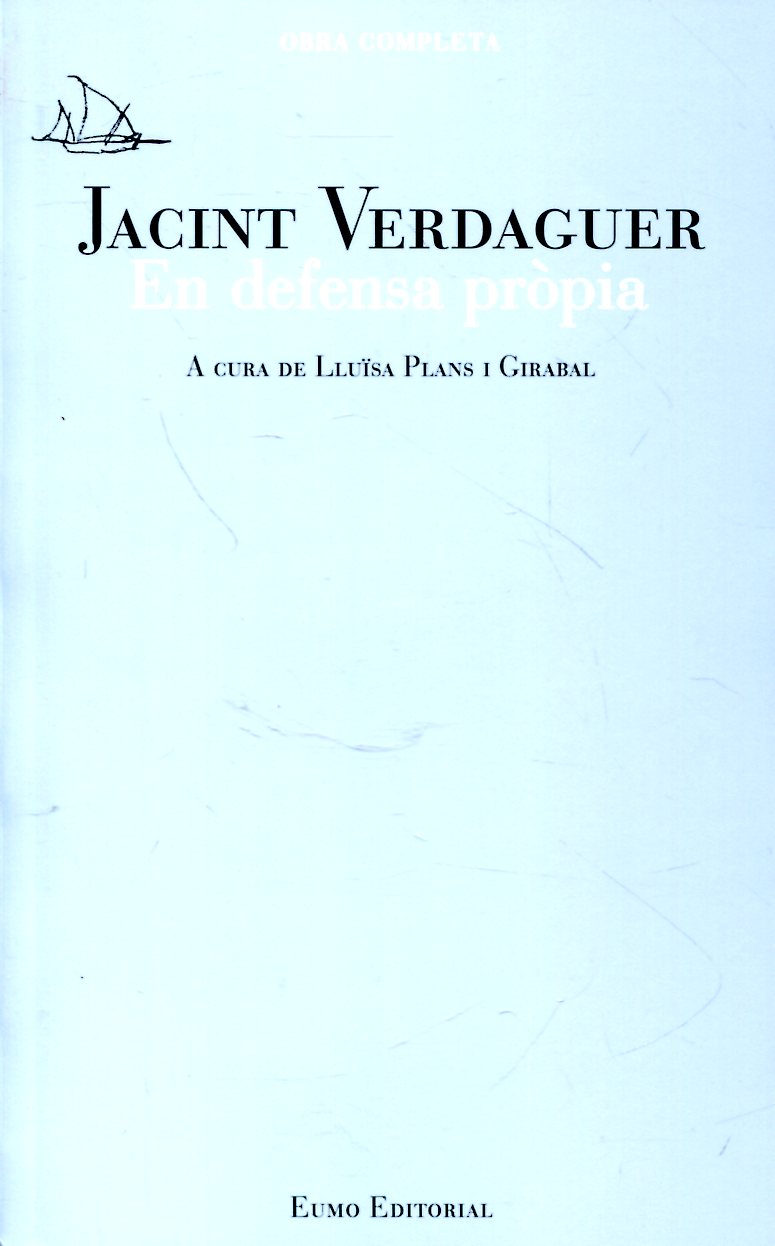 \viewkind4\uc1\pard\lang3082\f0\fs16 Els articles titulats "En defensa pr\'f2pia" escrits per Jacint Verdaguer, i publicats a la premsa de Barcelona entre el 1895 i el 1897. van provocar en l'estament eclesi\'e0stic i social de l'\'e8poca un conflicte, l'inter\'e8s del qual ha arribat fins als nostres dies. L'editora Llu\'efsa Plans situa el drama de Verdaguer dins la hist\'f2ria dels moviments socials cat\'f2lics d'Europa, un corrent de regeneraci\'f3 social que va entusiasmar eclesi\'e0stics i seglars.