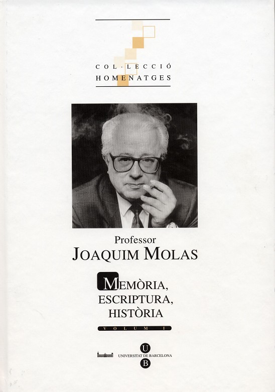 Amb motiu de la jubilació acadèmica del Dr. Joaquim Molas, el Departament de Filologia Catalana de Universitat de Barcelona, d'acord amb les millors tradicions universitàries en una tal mena d'avinenteses, va decidir homenatjar el professor que, format d'antuvi a la casa i docent després a la Universitat Autònoma de Barcelona, ha estat en acabat durant vint anys catedràtic de literatura catalana a la UB. Per això és que, sempre comptant amb la valuosa col.laboració del Servei de Publicacions de la UB, ha estat possible tirar endavant l'edició d'una miscel.lànea amb voluntat commemorativa i de contingut científic en la qual,sota el títol genèric de "Memòria, Escriptura, Història", més de setanta especialistes de tots els àmbits de la catalanística fan aportacions sobre els més diversos temes concernents a la literatura catalana de totes les èpoques, amb una especial incidència sobre la contemporània, objecte preferent d'estudi del professor Molas. Una bibliografia pràcticament exhaustiva d'aquest, pacientment aplegada per Maria Capdevila, converteix els dos volums de què consta l'obra en una aportació de primeríssima magnitud per al millor coneixement de la literatura catalana des d'una òptica actual, rigorosa i variada.