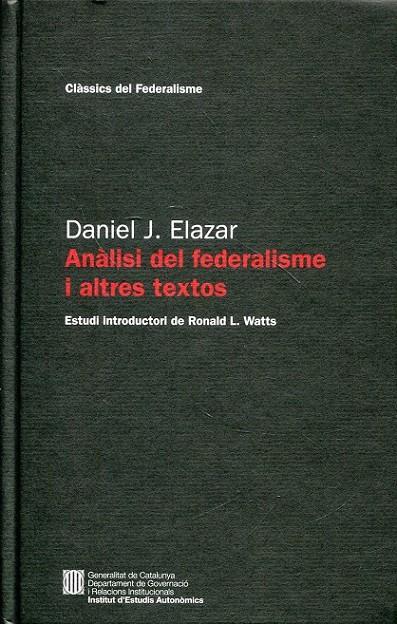 Recull dels principals textos dedicats a l'anàlisi del federalisme del professor nord-americà de ciència política Daniel J. Elazar, considerat un dels pioners d e l'estudi comparat d'aquest sistema polític i autor de gran nombre d'articles i llibres sobre els seus fonamentals conceptuals. Entre els textos aplegats en aq uesta edició figuren "Anàlisi del federalisme" (considerada com a l'obra més imp ortant de l'autor), "Federalisme vs. descentralització: una deriva des de l'aute nticitat", "La teoria política del pacte: orígens bíblics i desenvolupaments mod erns", o "El federalisme i el camí cap a la pau". Daniel J. Elazar (1934-1999) v a ser professor de la Universitat Bar-Ilan (Israel) i de la Temple University de Pennsylvania i fundador del centre d'estudis Jerusalem Center for Public Affair s sobre el Pròxim Orient.