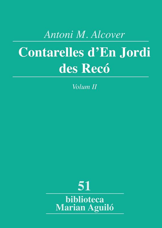 Aquest volum reprodueix les Contarelles d'En Jordi des Racó (Mn. Antoni M. Alcover), que el dialectòleg de Manacor publicà l'any 1915. Malgrat que aquesta edició recull algunes narracions que ja havien aparegut en la publicació de 1885 ("¡Quina pobila!", "Es Pobil dets ossos", "Un Estudiant per força", "N'Andreu Recó", "Ses Matances", "Ses Festes de Nadal" i "Es Baleu de Son Tuti"), aquestes presenten clares diferències lingüístiques, d'estil i de contingut. A més, s'hi afegeixen dos retaules de costums nous: "Corema, Setmana Santa i Pasco", que incorpora descripcions de tradicions i cançons populars que tenen lloc a diferents localitats menorquines, i "Des treball surt es profit". Els retaules de costums, emmarcats en el gènere del costumisme, són relats més o menys breus, que reflecteixen els costums, habituds i usos de la societat del moment. En les narracions domina, des del punt de vista argumental, l'ensenyament o exemplaritat moralitzant que se'n desprèn i també l'exaltació de valors religiosos i ètics com ara l'honestedat, l'esforç, la humilitat o la paciència; sempre, però, amb la voluntat última d'entretenir i de divertir el lector.
