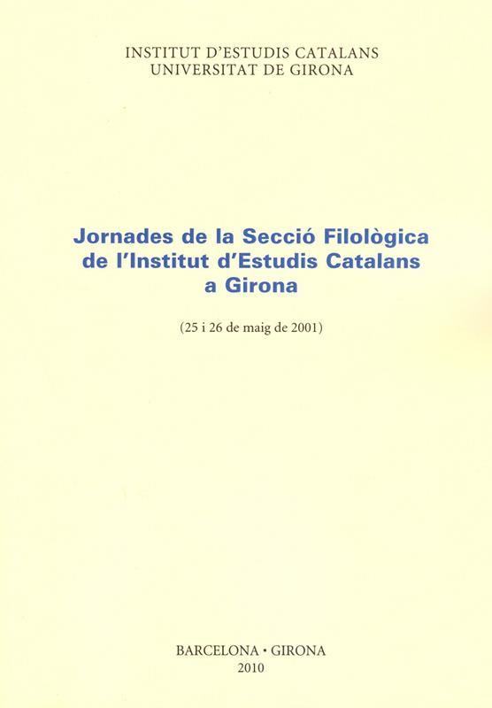 • Jornades de la secció filològica de l'institut d'estudis catalans a Girona (25 i 26 de maig de 2001)