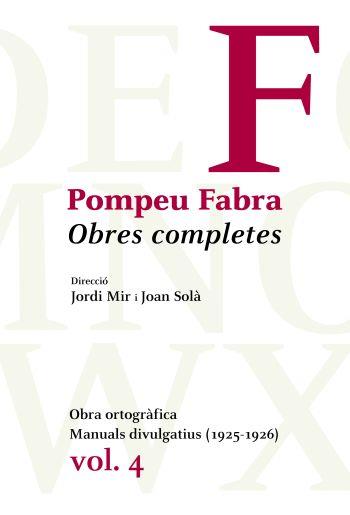 El quart volum de les Obres completes de Pompeu Fabra recull dos grups de textos: l'obra ortogràfica més important de Fabra i els volumets que el gramàtic va publicar a l'editorial Barcino els anys 1925 i 1926. El volum presenta així mateix les Normes ortogràfiques de l'IEC (1913), una gran fita en l'ortografia normativa del català modern, i el Diccionari ortogràfic (1917), del qual es reprodueix la segona edició, amb correccions i addicions respecte de la primera