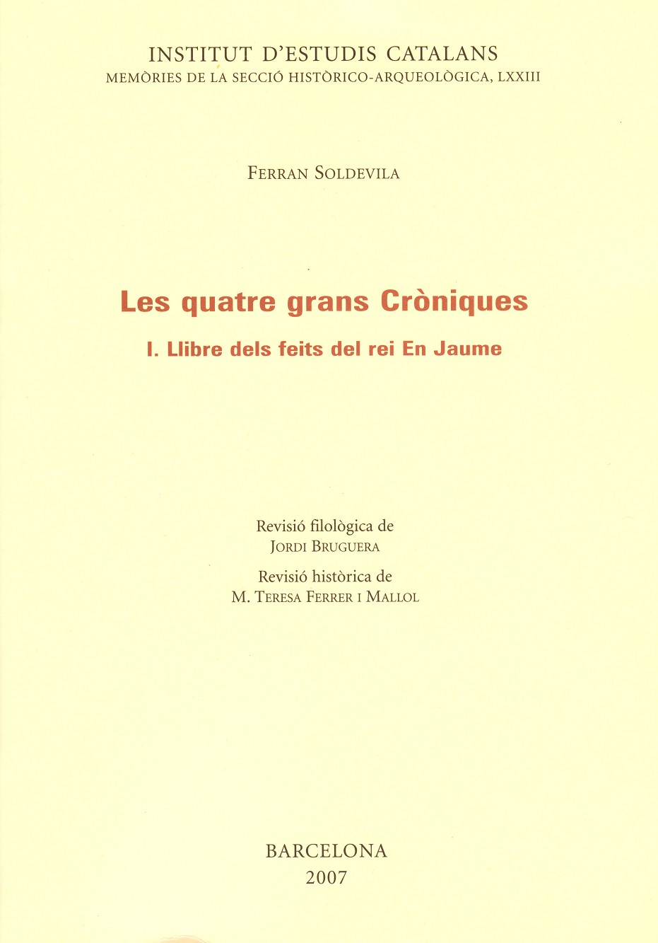 SOLDEVILLA, FERRAN INSTITUT D'ESTUDIS CATALANS Història i arqueologia Ref. 9788472839014 Altres llibres de la mateixa col·lecció Altres llibres del mateix autor