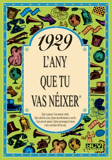 El llibre de 1929 conté una selecció de notícies curioses que van passar aquell any, imatges, anuncis i en general tot allò per entendre com era el món aquell any, com era la moda, què es va inventar, quins anuncis hi havia, les cançons i les pel·lícules d'èxit, quant valien les coses, quins personatges famosos destacaven, i moltes coses més. Aquest llibre de 1929 forma part de la popular col·lecció "L'any que tu vas néixer". Un detall ideal per al protagonista de la festa d'aniversari, o per sorprendre a cadascun dels convidats del teu proper sopar amb amics o família. Posa el llibre de l'any de cada convidat al seu lloc de la taula i veuràs la sorpresa quan se'l trobin. De seguida es trencarà el gel amb converses apassionades plenes de records. La col·lecció "L'any que tu vas néixer" va de 1920 a 2005.
