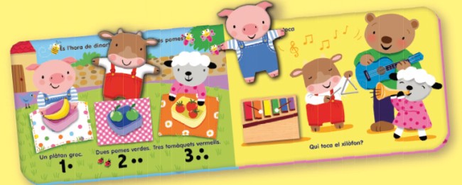 \viewkind4\uc1\pard\lang3082\f0\fs16 Diverteix-te posant els amics dins les butxaques! L'infant s'hio passar\'e0 d'all\'f2 m\'e9s b\'e9 acompanyant el vedell, el porquet i el xai a l'escola. Pel cam\'ed, haur\'e0 de triar l'animal adequat i posar-lo dins la butxaca corresponent mentre apr\'e8n a identificar formes i n\'fameros i a relacionar conceptes. Les divertides il\'b7lustracions i la interactivitat de la hist\'f2ria faran que els nens gaudeixin mentre aprenen. A partir d'1 any.