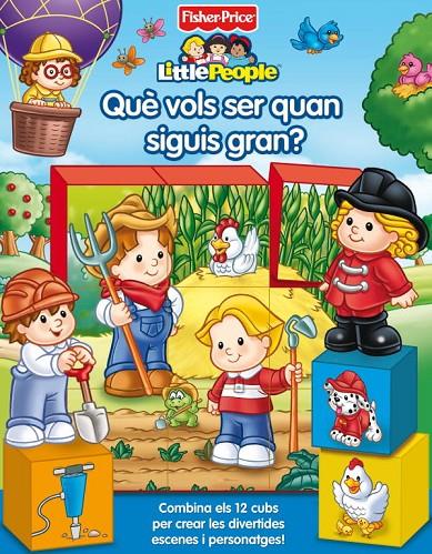 Acompanya els amics de Little People i veuràs com és un dia a la feina d'un granger, d'un obrer de la construcció, d'una mestra, d'un biòleg marí, d'un cuidador d'animals i d'una bombera!.A partir de la lectura d'aquest fantàstic llibre, els nens es divertiran barrejant i combinant els 12 cubs i podran crear divertides escenes i personatges. La diversió i l'aprenentatge estan garantits!