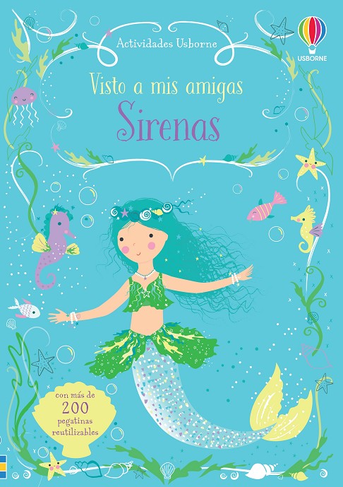 Los pequeños podrán pegar y despegar hasta dar con los mejores atuendos para las sirenas, así como decorar una y otra vez las escenas de cada página con peces, estrellas de mar y un sinfín de bonitos detalles submarinos.