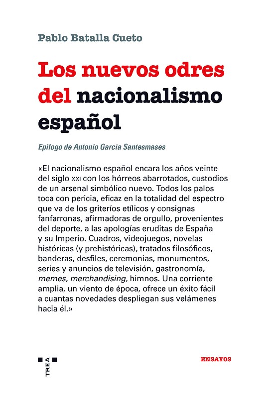 Durante los últimos años, España asiste a un vigoroso rearme simbólico de su nacionalismo. Pablo Batalla acuña una metáfora religiosa para referirse a las vertientes de dicho resurgimiento: el nacionalismo español es presentado acá como una religión laica cuya expansión se alimenta de la «triple fertilidad» que cualquier credo necesita para volverse exitoso; fertilidad teológica, catequética y misional. Hace prosélitos alumbrando desde tratados filosóficos (como la apologética hispanista de Gustavo Bueno y sus discípulos) hasta lemas y cánticos procedentes del deporte («soy español, ¿a qué quieres que te gane?»), pero que contienen y pregonan en su simplicidad el mismo mensaje sobre la excepcionalidad hispana, pasando por los cuadros de temática militar de Augusto Ferrer-Dalmau, las novelas históricas de Álber Vázquez o Isabel San Sebastián o la eclosión de la veneración al marino dieciochesco Blas de Lezo. Batalla parte del gol de Iniesta que dio la victoria a la selección española de fútbol en la final del Mundial de Fútbol de 2010 para
