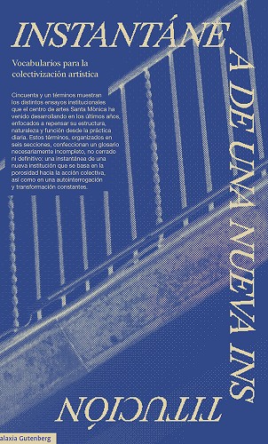 Cincuenta y un términos muestran los distintos ensayos institucionales que el centro de artes Santa Mònica ha venido desarrollando en los últimos años, enfocados a repensar su estructura, naturaleza y función desde la práctica diaria. Estos términos, organizados en seis secciones, confeccionan un glosario necesariamente incompleto, no cerrado ni definitivo: una instantánea de una nueva institución que se basa en la porosidad hacia la acción colectiva, así como en una autointerrogación y transformación constantes.