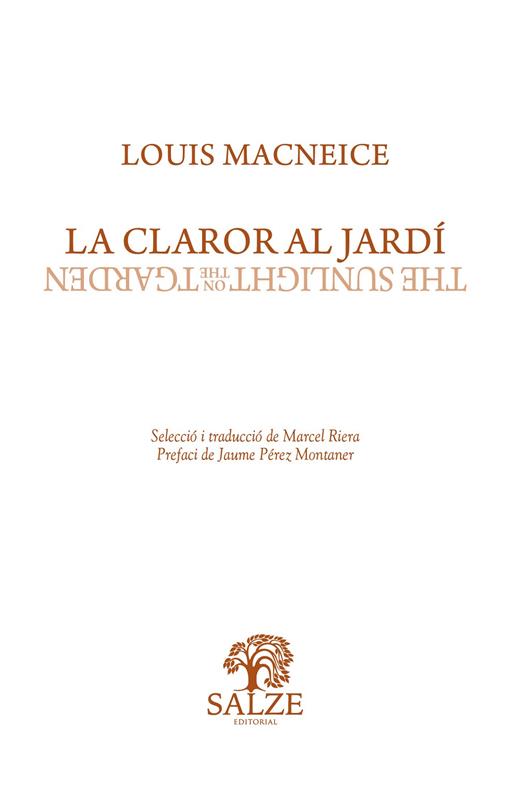 PER PRIMERA VEGADA EN CATALÀ LA POESIA DE LOUIS MACNEICE: «És un cas a part, MacNeice és el poeta dels poetes» (T. S. ELIOT). «MacNeice és una figura constant, cada cop més influent i lluminosa» (SEAMUS HEANEY).