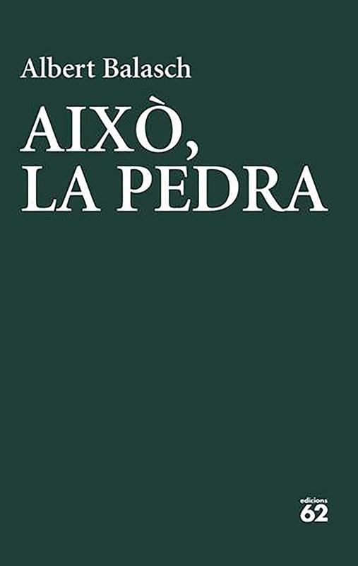 El 2016, Albert Balasch va aplegar a Quadern del frau el resultat de vint anys de dedicació poètica. Deu anys després, Això, la pedra recull tres llibres de versos («Encara belluga», «Llenya per tapar-nos» o «Hores d'escòria»), uns apunts («Tropari») i una elegia («La pedra») que estan destinats a provocar en els lectors de poesia el mateix impacte del Quadern del frau: la certesa que Albert Balasch, el poeta de la vida petita desconcertada, és un poeta necessari. El llibre s'acompanya d'uns dibuixos de Tia Zanoguera, que ja ha col·laborat altres vegades amb Albert Balasch.