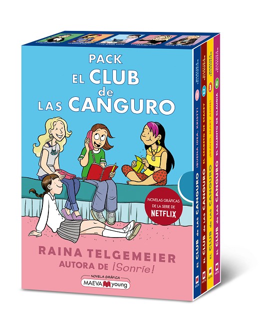 Si todavía no conoces EL CLUB DE LAS CANGURO, ha llegado el momento. Un pack con las cuatro primeras novelas gráficas de la serie de novelas de Ann M. Martin, ilustradas por Raina Telgemeier.